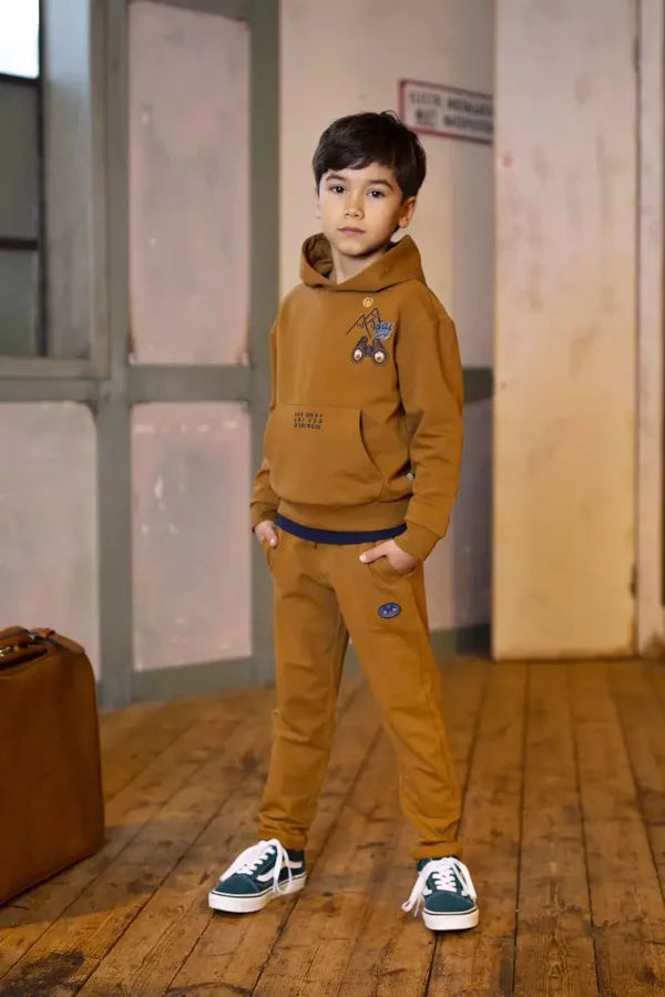 Zo hip, deze hoodie in een stoere bruine kleur. Met een zak voorop en heb je gezien dat er een borduur op de zak zit?