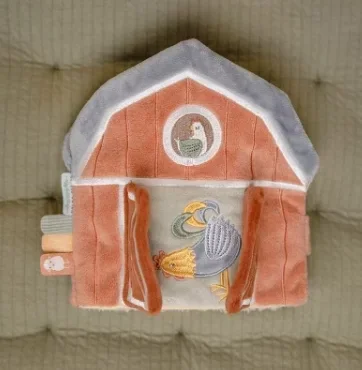 Baby’s vervelen zich geen moment met dit kleurrijke activiteitenboekje van Little Farm in de vorm van een schuur. Er valt veel te beleven met de verschillende materialen en activiteiten, zoals een spiegeltje, rammelaar en verstopte speeltjes. Ook heeft het zachte boekje verschillende labels om aan te voelen. Dit prikkelt niet alleen de zintuigen, maar is ook goed voor de ontwikkeling van de hand-oogcoördinatie.