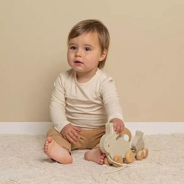 Met een groot en een kleiner konijn aan een trekkoord, bieden ze speelplezier en bevorderen ze de motorische vaardigheden.