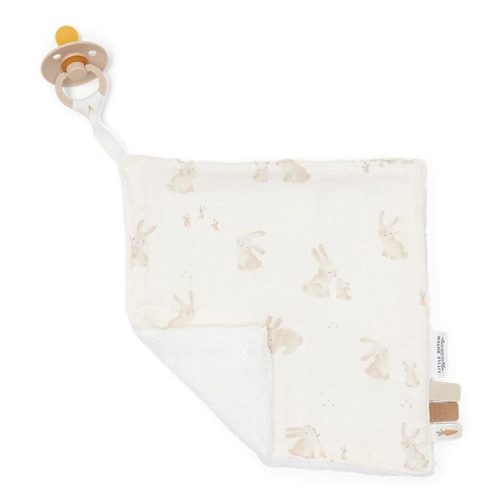 Deze knuffeldoek hydrofiel Baby Bunny van Little Dutch is gemaakt van biologisch katoen en is Oeko-Tex gecertificeerd. De voorkant van het doekje is gemaakt van een voorgewassen hydrofiele stof en de achterkant van een zachte fleece stof. Hierdoor zijn beide kanten heerlijk zacht. Perfect als speen-, speel- of troostdoek voor je baby of peuter. Aan het lusje van de knuffeldoek kun je een speen- of bijtring bevestigen. De knuffeldoek is 20 x 20 cm.