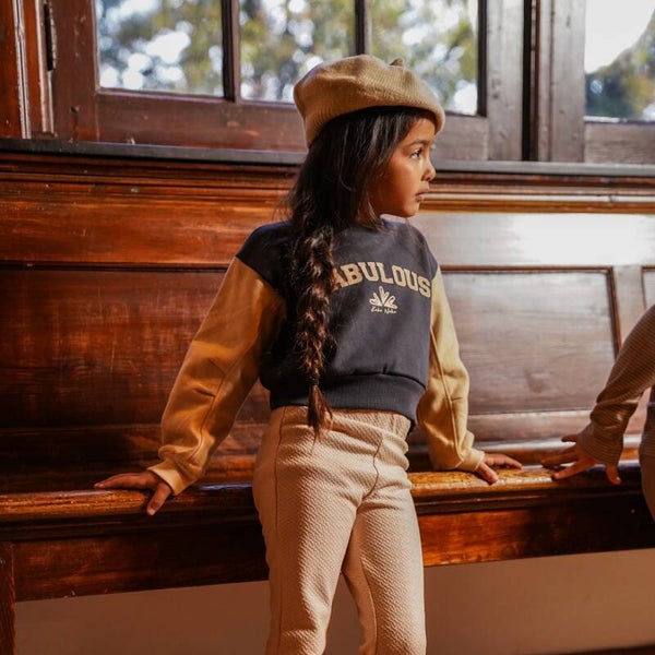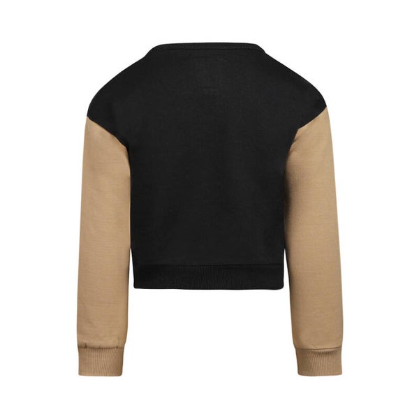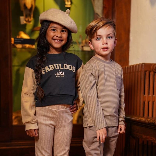 Deze Koko Noko sweater in faded black is precies wat je zoekt voor een toffe, casual look! Het cropped, loose fit model met zandkleurige mouwen geeft de trui een speelse twist. De opvallende "Fabulous" tekst op de voorzijde maakt hem extra leuk en een baseball look. Maatjes tot en met 86 zijn voorzien van handige drukkers op de schouder, zodat de trui makkelijk aan- en uit te trekken is. Perfect te combineren met een stoere broek of rokje!